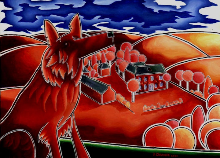 A commission by some friends in Cornwall to paint their dog which I set in front of their country home. Rather than paint the dog as some might with every hair ‘just so’, I decided to capture the charcter of the dog whose name was ‘Beowulf’. I’m pleased with the dog’s ‘cheekyness’.