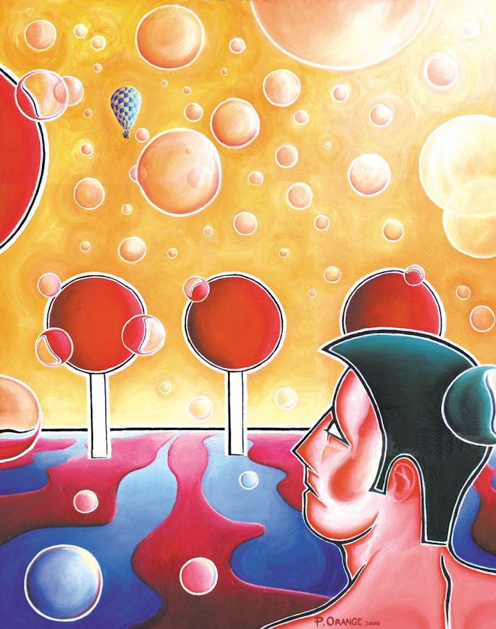 The original concept was sketched in biro whilst at work inspired from a one-sided love interest in the past. The piece is painted in acrylics and the style building on an earlier work called ‘Contracts Disease‘ painted four years previous.