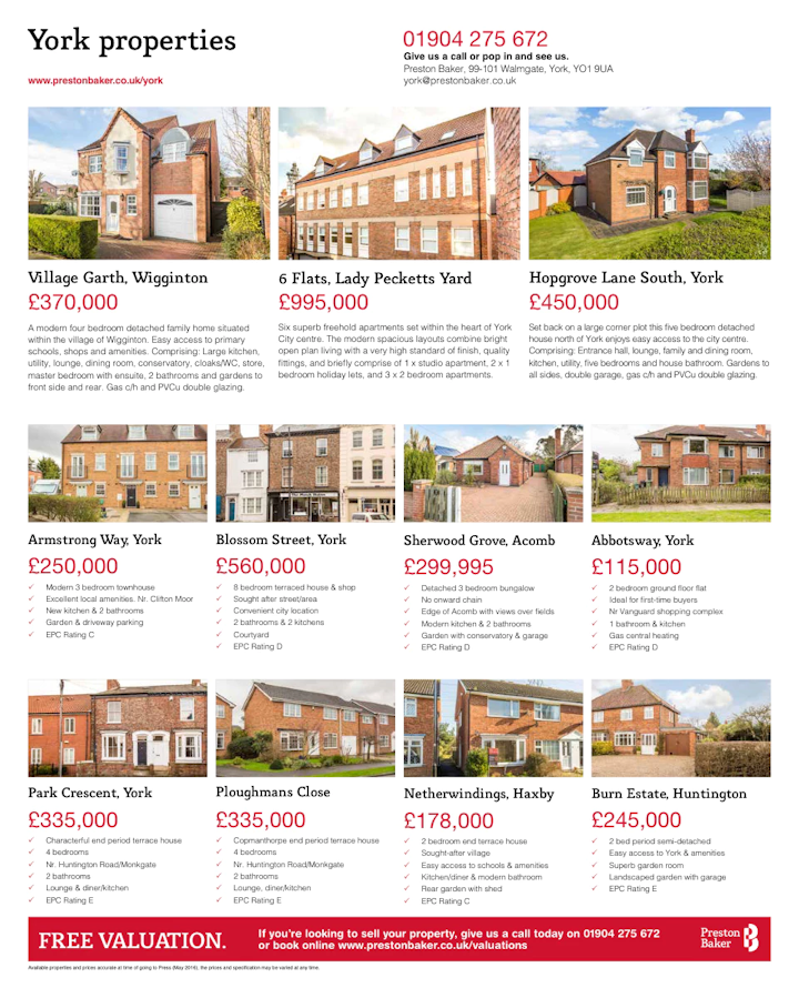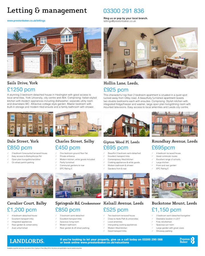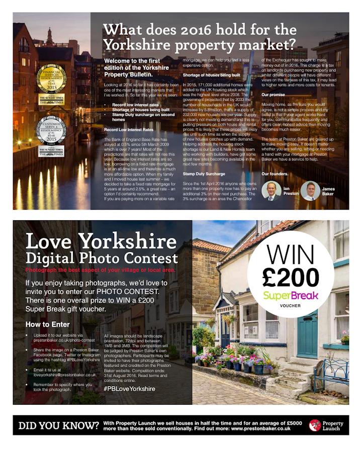 As a tactic to drive more business and build brand awareness across the Preston Baker territories across Yorkshire, we put together our own property newspaper. This was sent to xx homes and delivered by our canvassing teams.